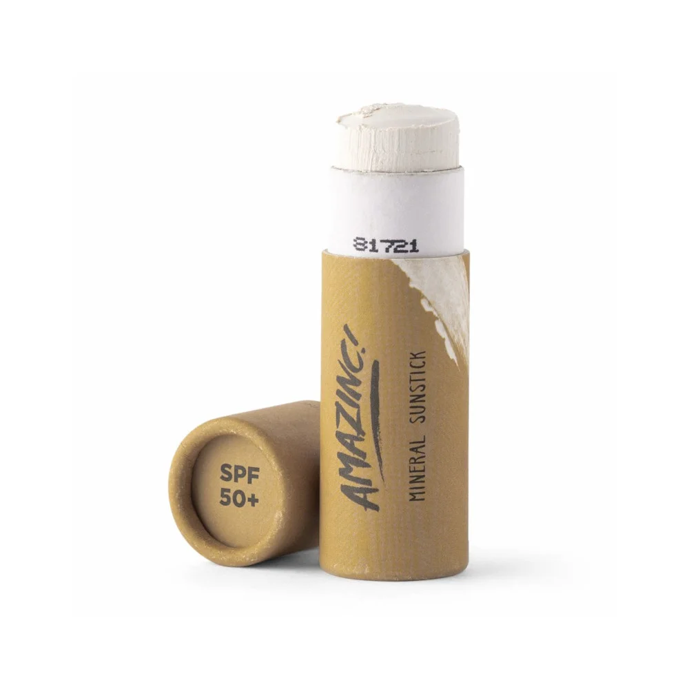 Loodusliku koostisega Amazinc mineraalne päikesekaitsekreem mugavas ja keskkonnasõbralikus kartongist pulktuubis. Unikaalse koostisega salvi-laadne kreem pakub nahale tugevat UV kaitset ja on veekindel. Sobib hästi nii spordi tegemiseks, matkamiseks kui ka pikemaks päikese käes viibimiseks (näiteks aiatööd, väljas töötamine jmt). Sobib ka vees kasutamiseks, sest kreemi veekindel koostis ei kulu veega maha. Kreemi koostises olev mineraalne tsinkoksiid peegeldab kahjuliku UV-kiirguse nahalt eemale. Kreem on päikesekaitsefaktoriga SPF 50+ ning pakub kaitset nii UVA kui ka UVB kiirguse eest. Valmistatud mitte-nano (non-nano) ja katmata tsinkoksiidi baasil, mis on looduslik, fotostabiilne ja ei imendu nahka. Mõeldud kasutamiseks eelkõige näo peal (nina, põsesarnad, kõrvatipud, huuled), aga sobib kasutamiseks ka mujal kehal, kus on suurem päikesepõletuse oht (näiteks õlad). Sobib nii täiskasvanutele kui ka lastele. Jätab nahale keskmisest tugevama valge varjundi, nii tead, et nahk on kaitstud. Vali endale meelepärane toon – valge või šokolaadi beež.