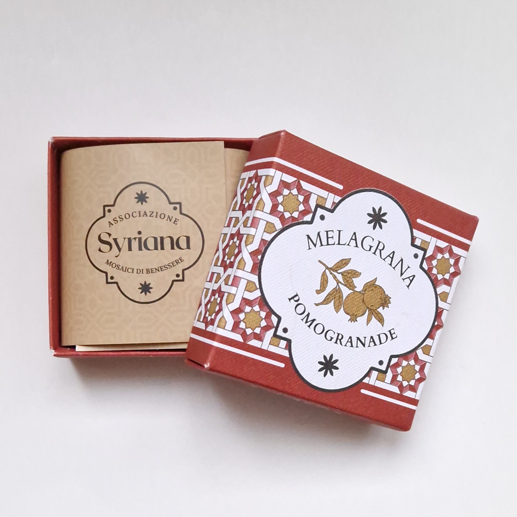 Loodusliku koostisega parfümeeritud käsitööseep granaatõuna lisandiga. Inspireeritud Süüria traditsioonidest. Valmistatud käsitööna Türgis Süüria sõjapõgenike poolt heategevusliku eesmärgiga sõjapõgenike laste hariduse toetamiseks.